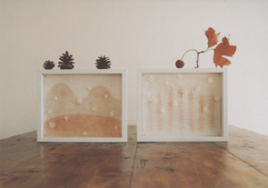 今回はハンドプリントの布に手を加えて絵本の挿し絵のような やわらかい冬の景色をイメージしたフレームを制作しました。