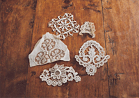 おばあさんのやっているボビンレースや古いボタンのストールを見つけました。